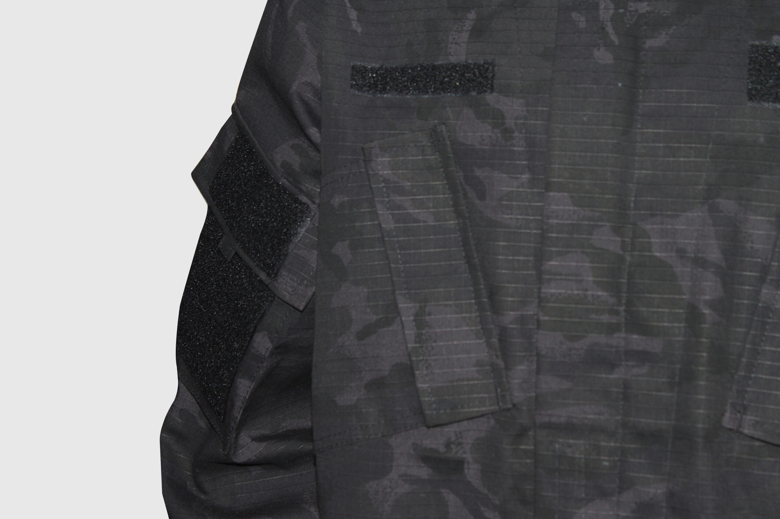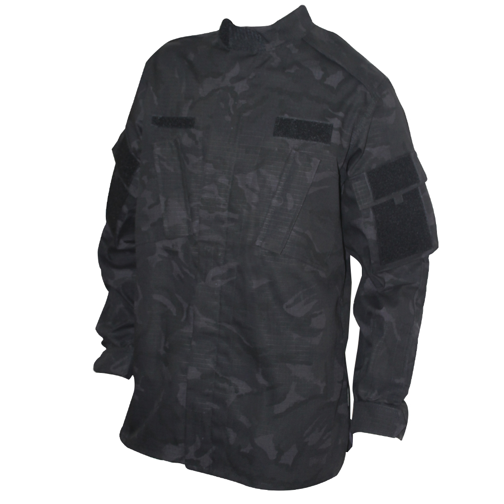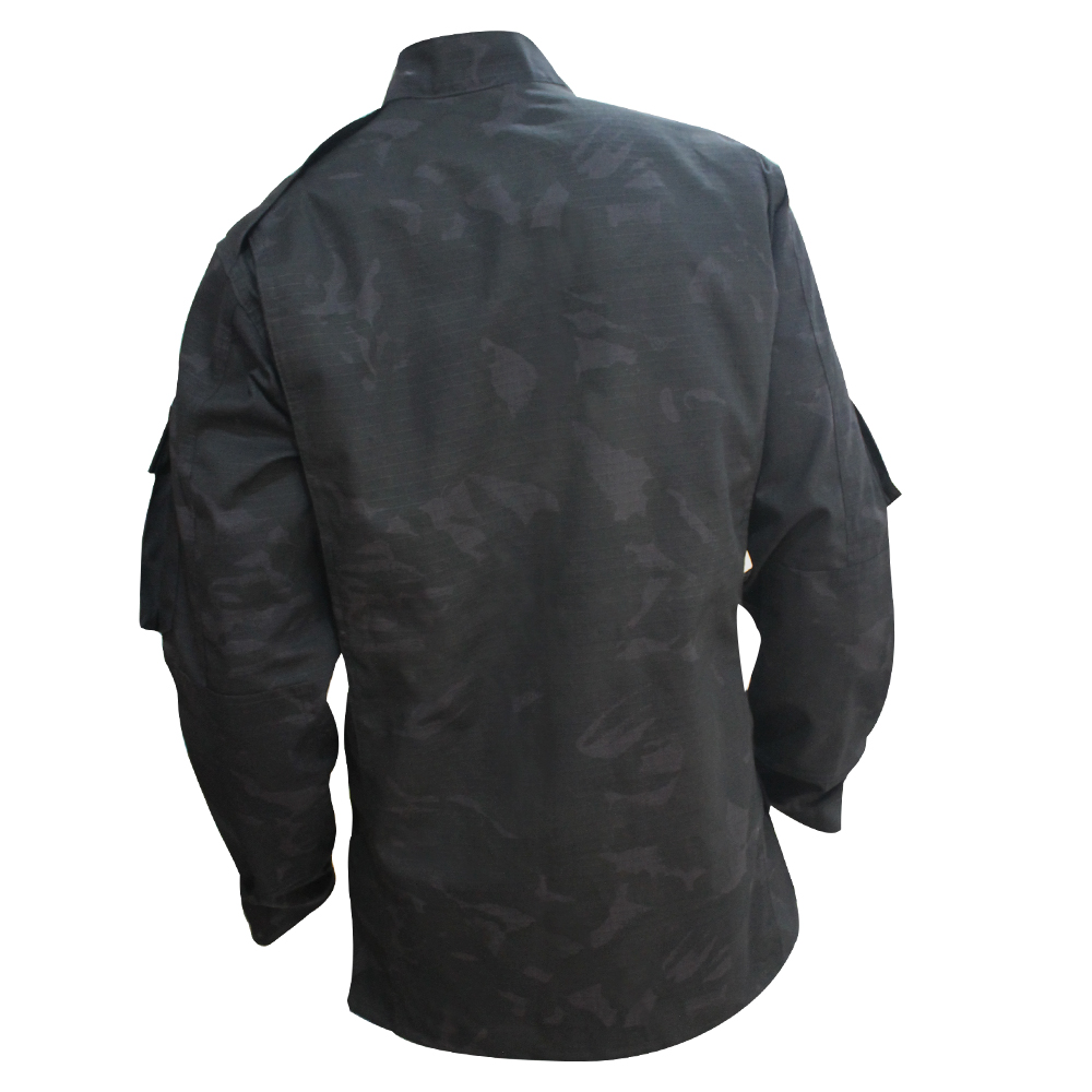 4 bolsillos frontales: 2 en el pecho y dos en los brazos. Cremallera completa y cierre de solapa con velcro; resistente al agua, no impermeable. Todos los talles.